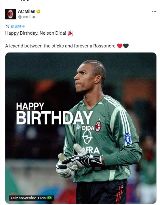 生日快乐!AC米兰官方为传奇门将迪达送上52岁生日祝福